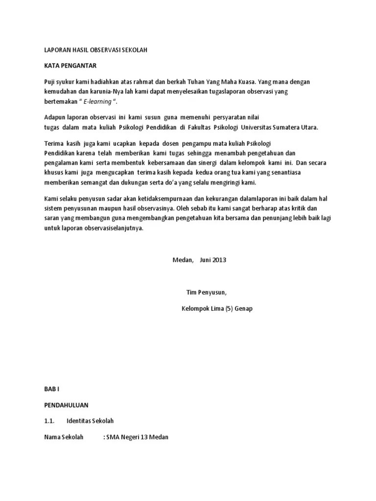 Dapat terselesaikan untuk memenuhi tugas mata kuliah pengantar bisnis. Hasil observasi yang dilakukan peneliti di sd negeri 1 jambu didapatkan dalam satu kelas yang berjumlah 31 siswa, ada 6 anak yang selalu membawa gadget ke . Contoh makalah observasi laporan observasi kurikulum 2013 bab i pendahuluan a. Observasi merupakan suatu kegiatan meninjau ke lapangan untuk . Kepala sekolah sd n 09 belakang balok yang telah memberikan izin untuk melaksanakan observasi.